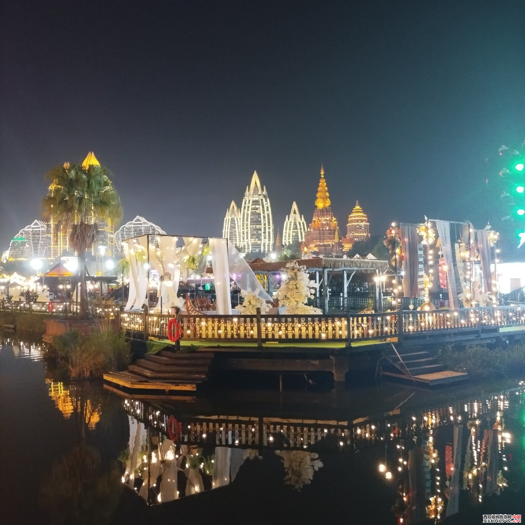 主要景点与特色:夜市街景展现了原汁原味的民族传统烟火气息,有民族特色手工艺品、民族服饰、旅拍等店铺。这里还有12个大小剧场、演艺场和舞台,上演富有中、老、缅等六国风情的歌舞表演。此外,游客还可以品尝到舂鸡脚、香茅草烤鱼、冬阴功汤等西双版纳本地及东南亚特色美食,体验乘坐游船、穿着傣装或东南亚服饰拍摄风情大片等项目。